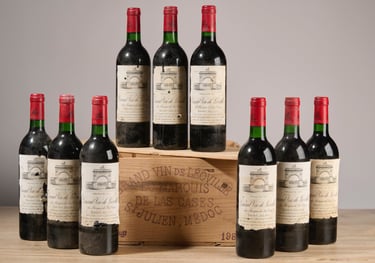 9 bouteilles Château LEOVILLE-LAS-CASES, 2ème cru, SAINT-JULIEN, 1983.